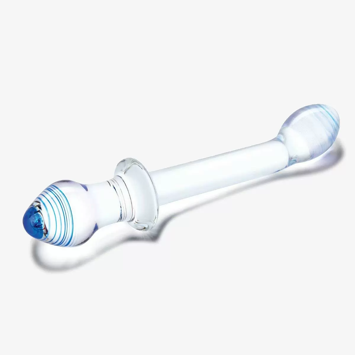 Versatile curved and double-ended get ready to experience a whole new level of penetration play with this dildo from Glas! The bulbous and curved tip is designed to target your G-Spot. Looking for a toy that’s good for both vaginal and backdoor play this toy is great for both the longer shaft with bulbous tip is great for those hard-to-reach sweet spots and the plug shaped end is perfectly designed for exciting anal play. Made of smooth handblown glass it’s easy to clean and compatible with any lube. 9.5 inches in length and flat base between each ends makes it perfectly safe for anal use. Tapered tips make for easy insertion discover dual stimulation with this versatile toy from Glas! Measurements (approx.)Length: 10inchInsertable Length: 5.75inch & 3.5inch