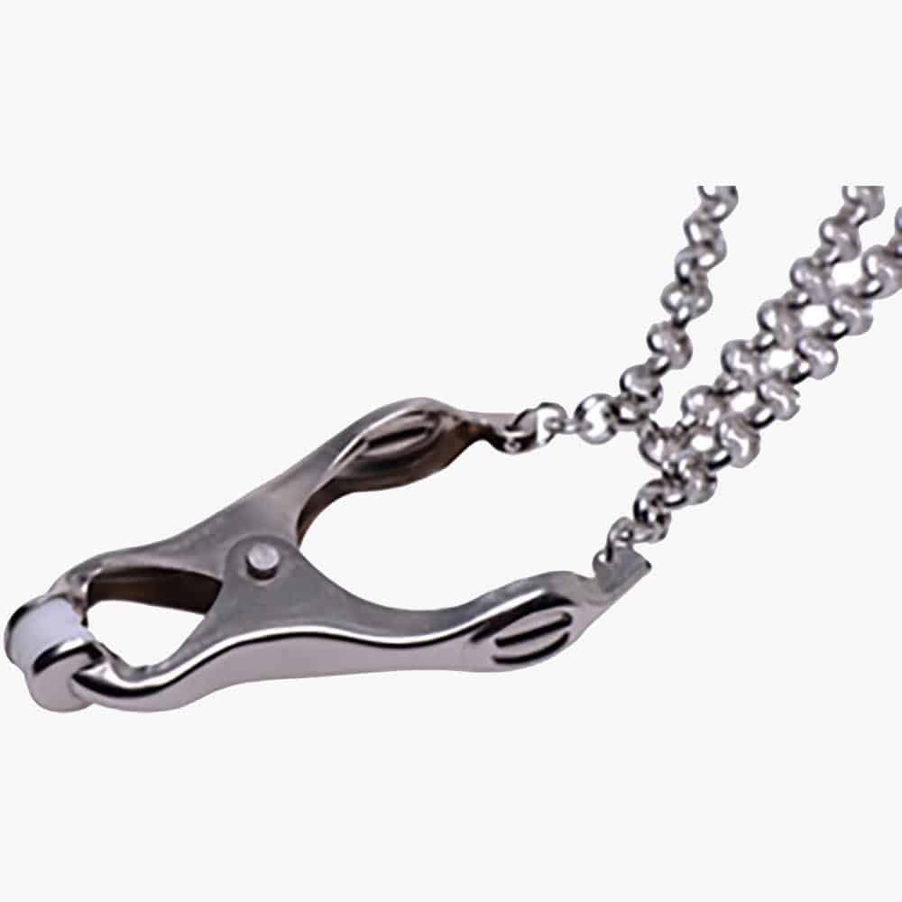 <p>Please your partner with the stunning aesthetic of these unique nipple clamps. The extreme grip tip keeps them firmly on your lovers nipples pinching for the perfect combination of pleasure and pain. Easy to use these clamps can be utilized quickly and efficiently in the heat of the moment or more ritualistically during your play scene. Attach weights to the chains for additional sensation play to send your masochist over the edge. This beautiful set of clamps is not only stunning to look at but will provide the stimulation that your partner craves.</p>