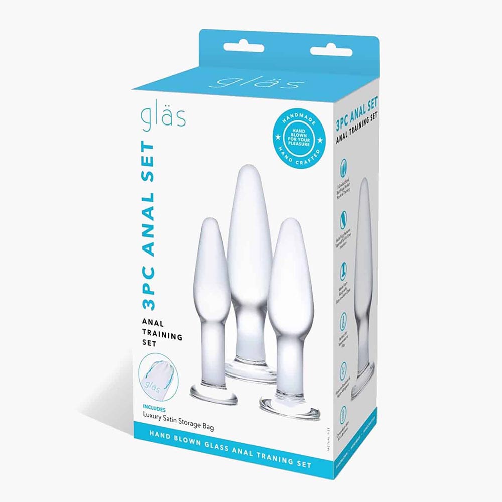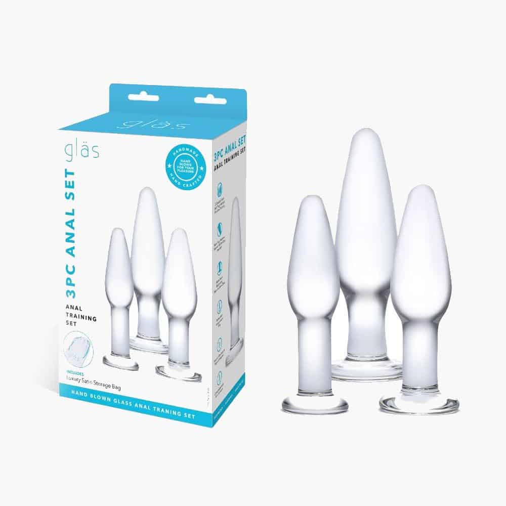 This 3-piece glass anal training set will take you through three different levels of anal play to prepare you for your journey through the back door.