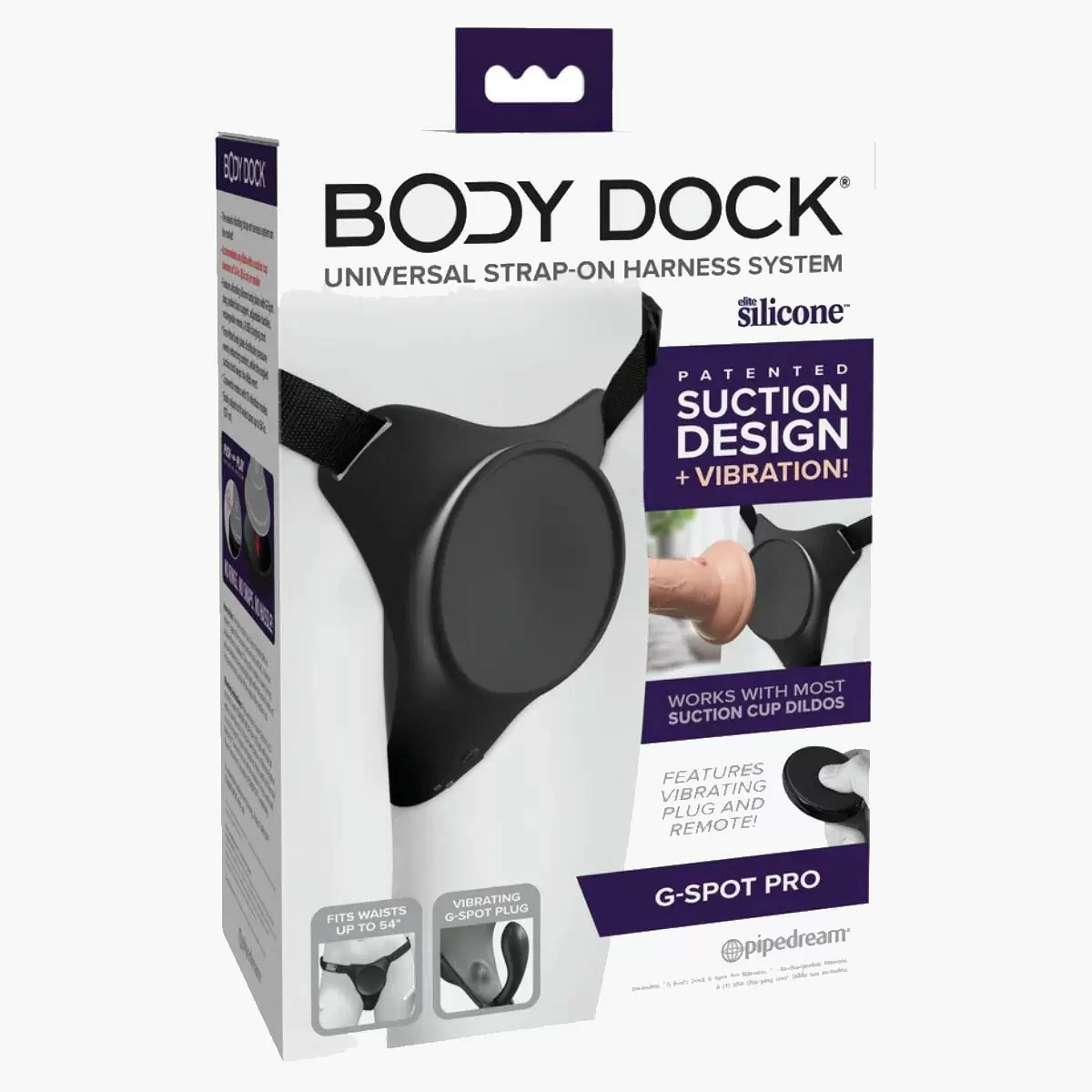 The patented Body Dock G-Spot Pro takes strap-on play to a whole new level with VIBRATION! It features padded back support adjustable side-release buckles and a premium silicone docking plate with two powerful motors for internal and external stimulation. Now both partners can enjoy the action which you can also control with the rechargeable remote! Changing your favorite strap-on accessory has never been faster or easier! It’s as simple as attaching the suction cup on your favorite dildo or vibrator to the docking plate while the nylon straps easily adjust to fit most sizes and body types. Best of all it works with most dildos on the market today including some you may already own. No rings. No snaps. No hassle!