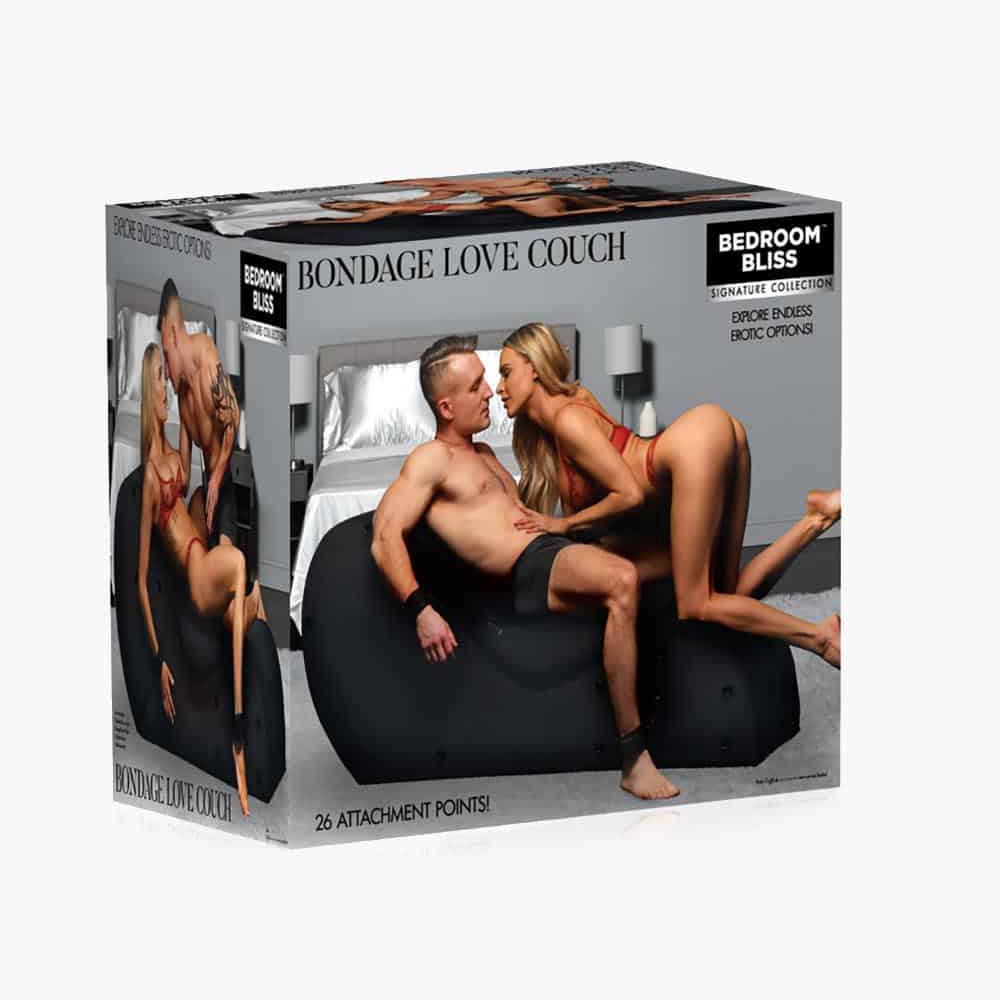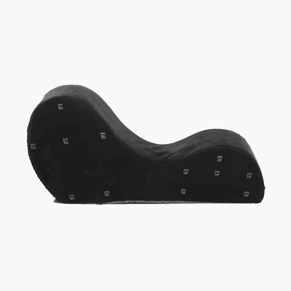 This sexy comfortable chaise lounge is perfect for adding some spice to your life! Made out of high-density foam it’s easy to move and compact when shipped. This bondage couch opens up a world of possibilities that enable you and your lover to explore countless new sex positions that support your body and theirs! With 26 different nickel-free metal attachment points along the sides and the bottom you can restrain your partner with cuffs that attach to D-rings. The soft faux suede outer cover feels exquisite against your bare skin and the foam is protected by a water-resistant inner cover both of which are machine washable.