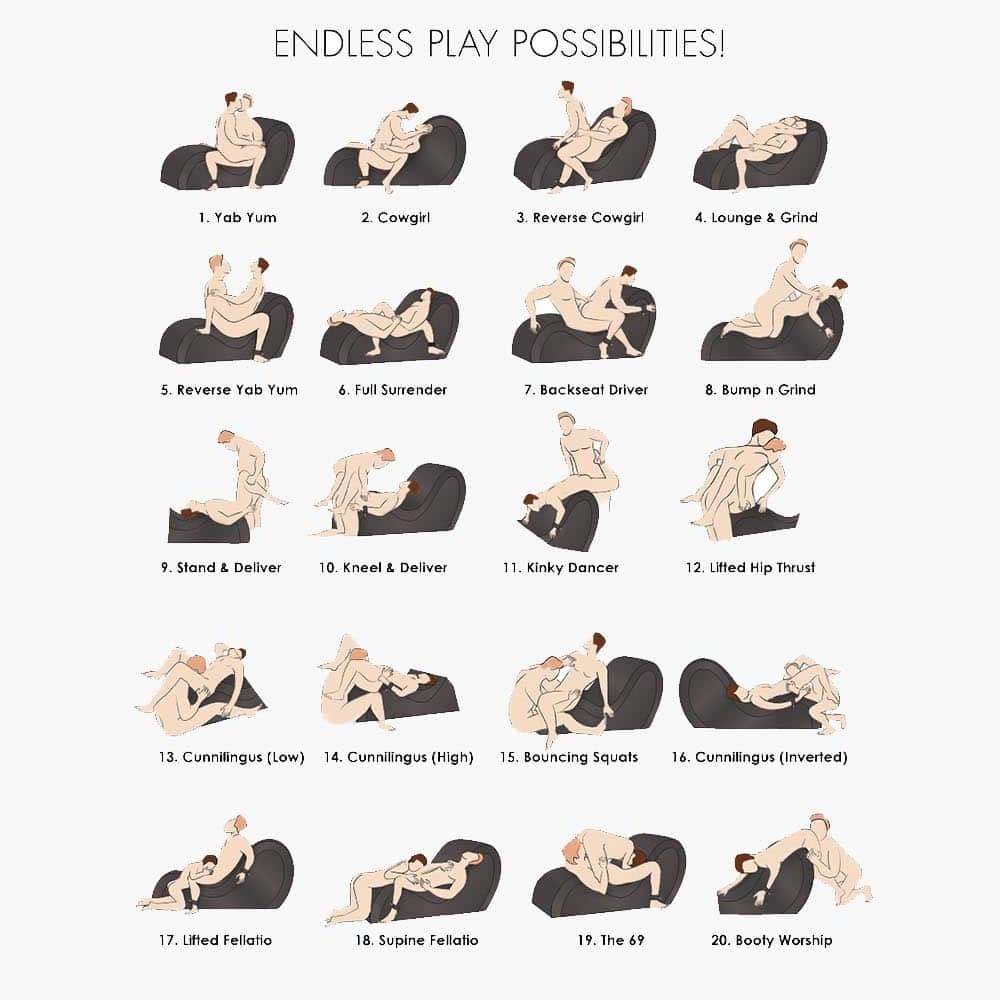 After placing wrist and ankle cuffs on them hook their wrists up above their head and their ankles down below while they’re face up. With their legs spread warm them up with some oral attention between their thighs. Once they’re warmed up reposition them and climb on top! Or turn it into a scene and bring out the vibrators feather ticklers whips and floggers! Turn them to face you or put them in doggy! Have them upside down or right side up. Either of you can be high or low on the couch to adjust for different positions that help you both reach orgasmic new heights!