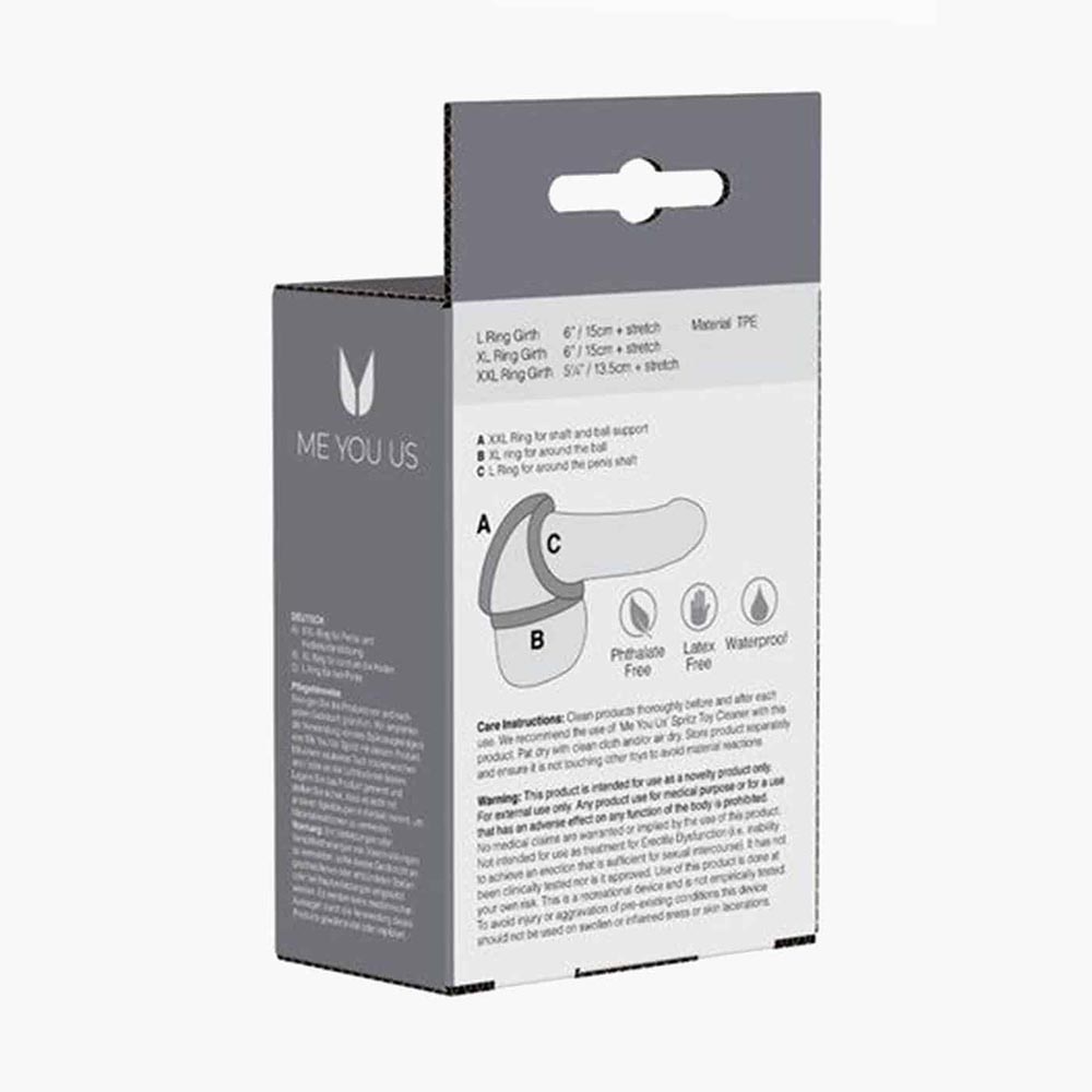 Stretch into position gradually, placing each ring so it sits comfortably around the shaft and behind the testicles.
