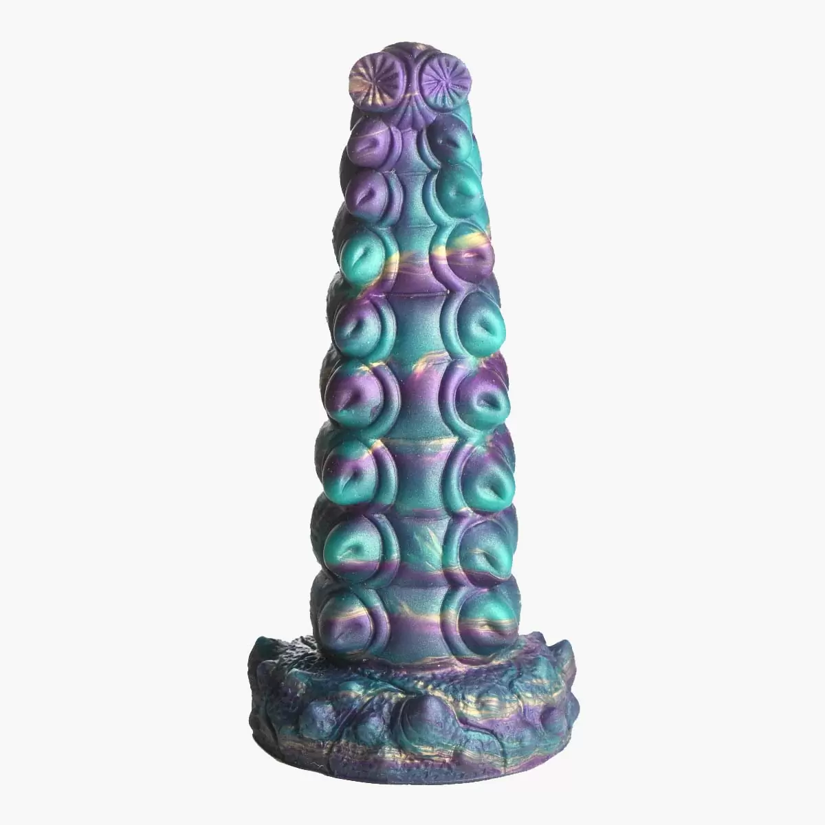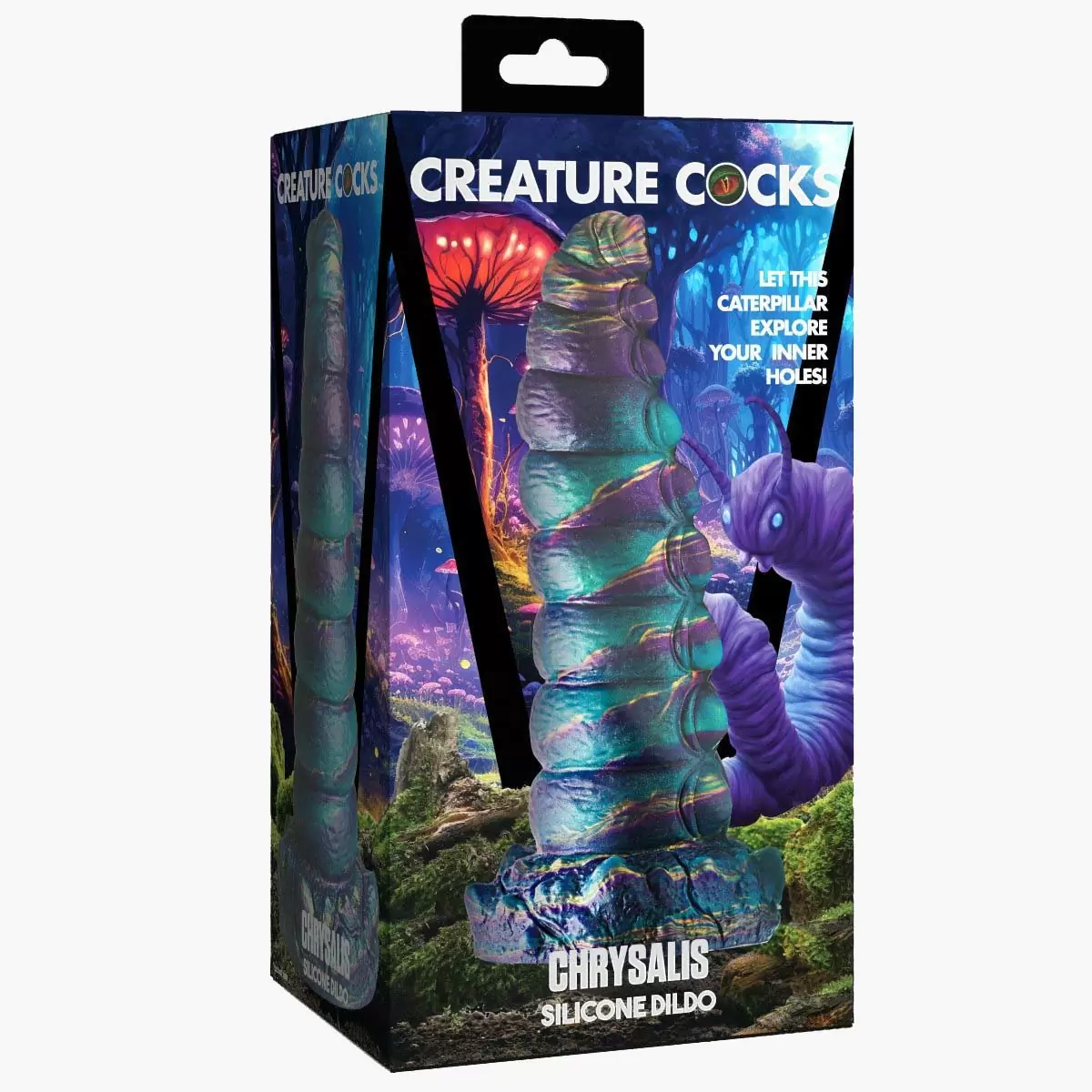 Let this alien Chrysalis climb inside! It has a beautiful teal purple gold and blue coloring that is iridescent and unique. The head is small for easier insertion and it gets bigger the deeper you go. Enjoy the gradually bigger bulging segments! The unusual and stimulating textures of the feet make this a very satisfying experience! Made from premium phthalate-free silicone it has a firm core and soft silky surface. Explore every sci-fi fantasy roleplay or cosplay scene you want with this epic adult toy! The wide base is anal-safe has a suction-cup for hands-free play and strap-on harness compatible! Play alone or with a lover!