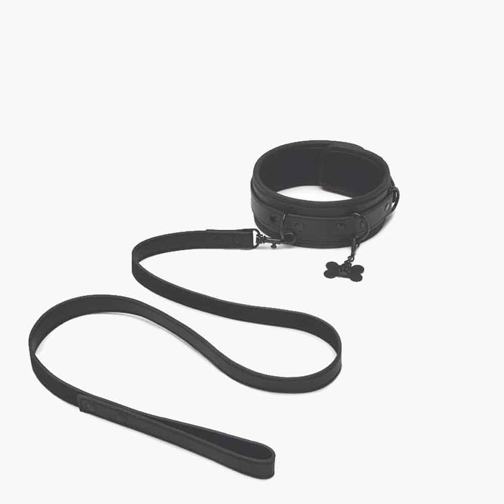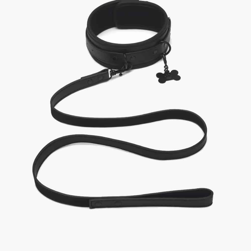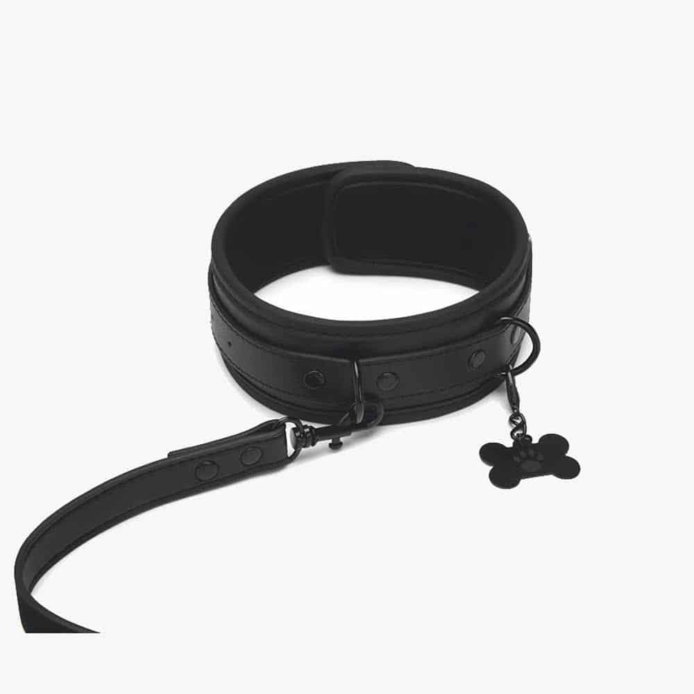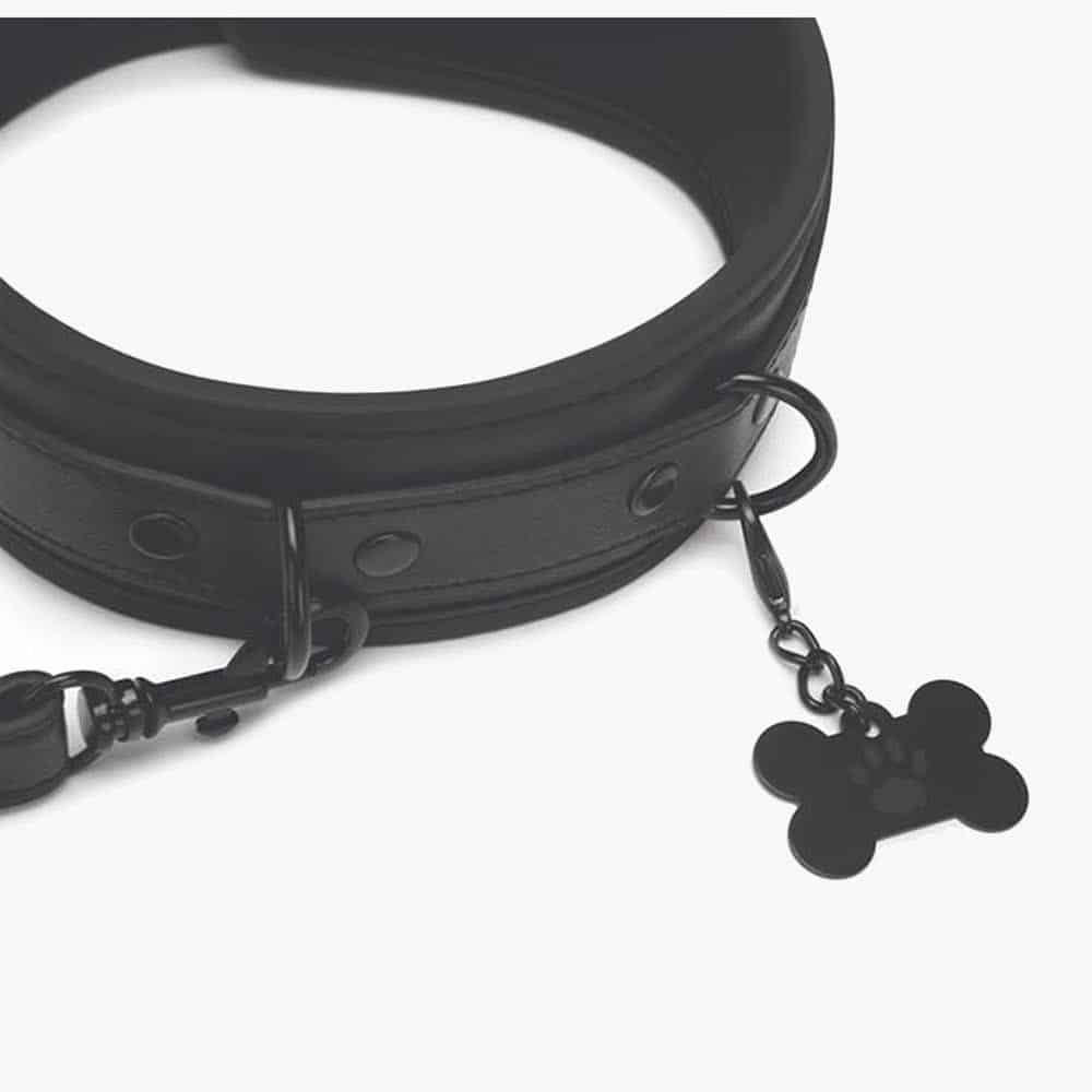 The adjustable collar wraps snugly around your neck for a secure yet comfortable fit, while the sturdy loop handle leash gives your handler effortless control. A cheeky puppy bone charm dangles from the collar, adding a kinky, light-hearted twist to your scene.