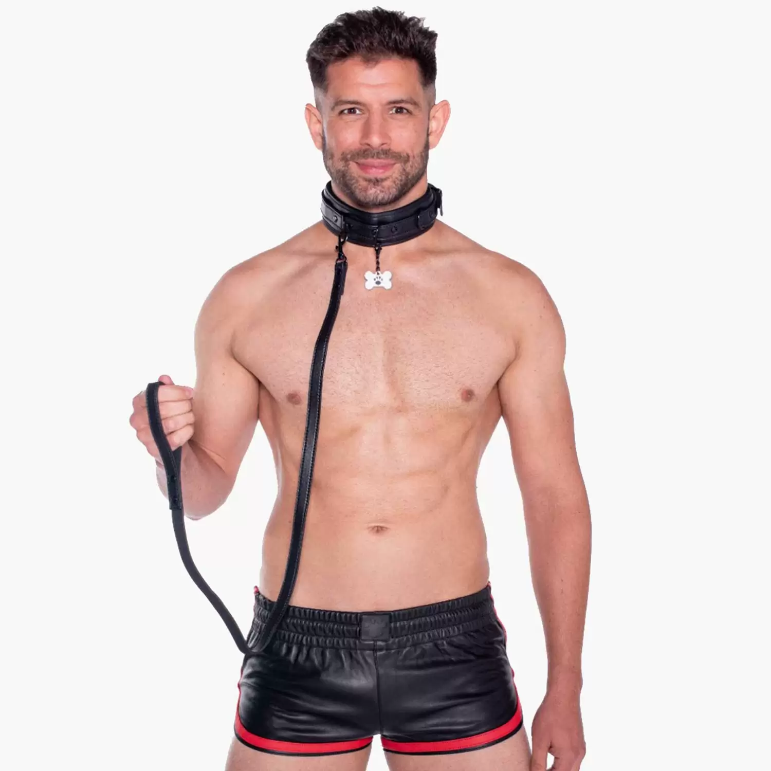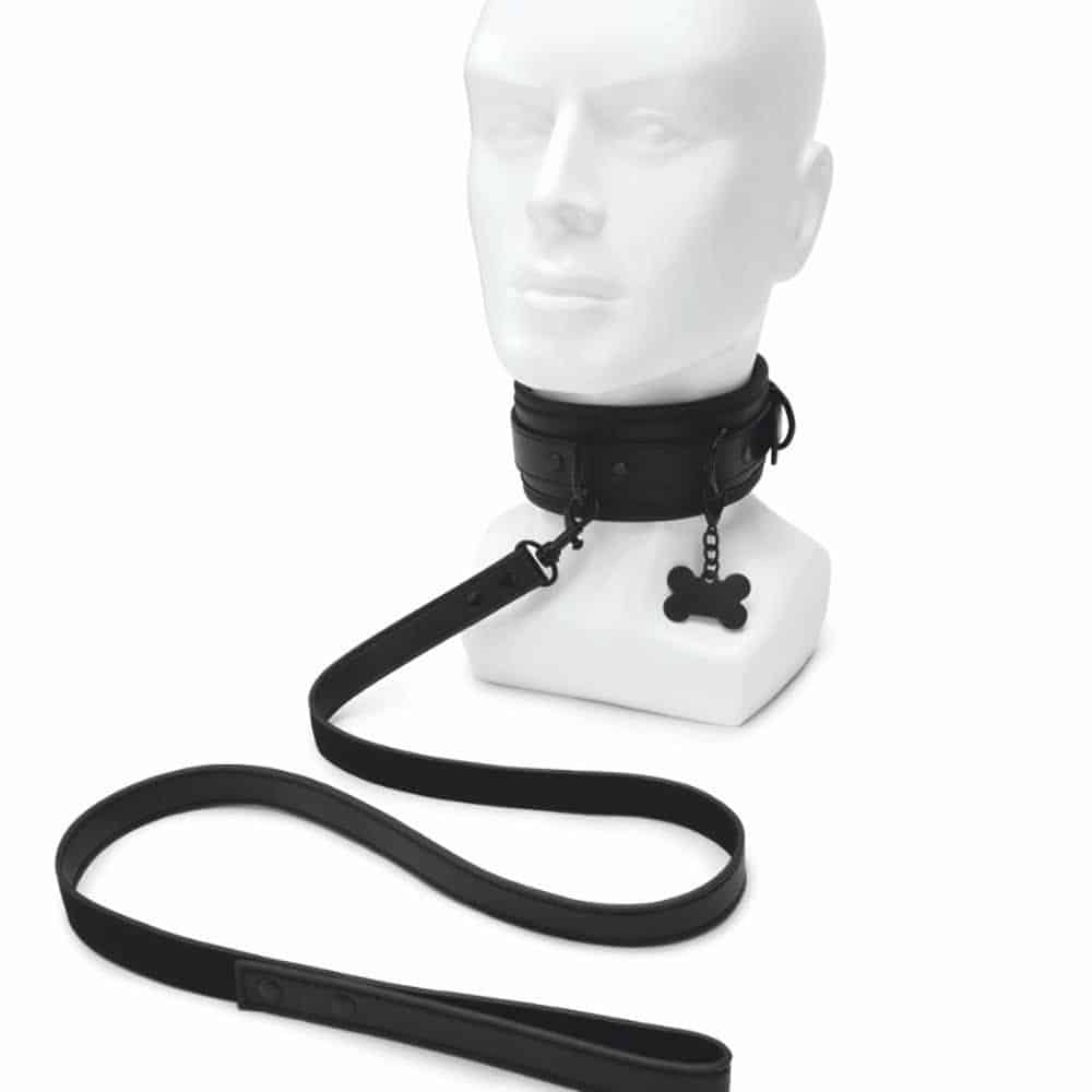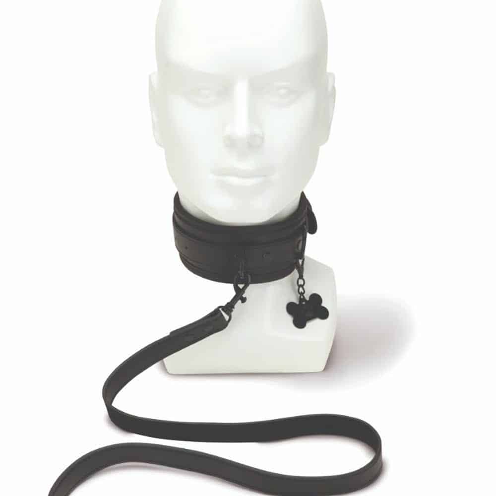 The adjustable collar wraps snugly around your neck for a secure yet comfortable fit, while the sturdy loop handle leash gives your handler effortless control. A cheeky puppy bone charm dangles from the collar, adding a kinky, light-hearted twist to your scene.