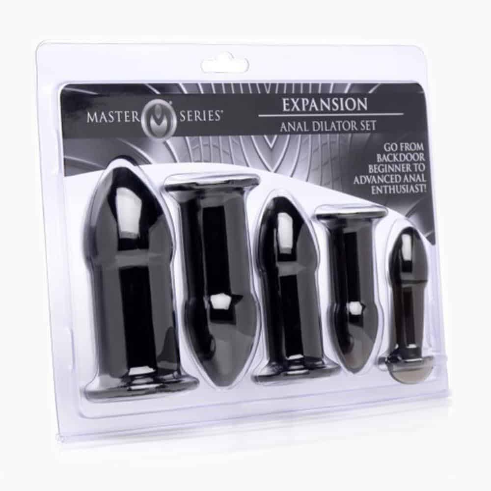Master Series Expansion Anal Dilator Set has semi-rigid TPE providings the firmness needed for easy insertion with enough flexibility for comfort. Use the plugs alone for pleasure or use them as a tool to gradually step up your tolerance so you can take larger and larger toys. The graduated size allows you to work up to your desired size in ecstasy and ease.