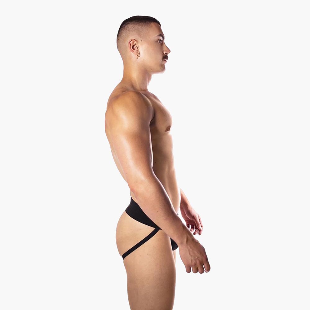Crafted from real black leather, this jock features a ventilated punch-hole pouch that’s as breathable as it is seductive. The thick double waistband frames your waist perfectly, enhancing your physique and showing off your assets.