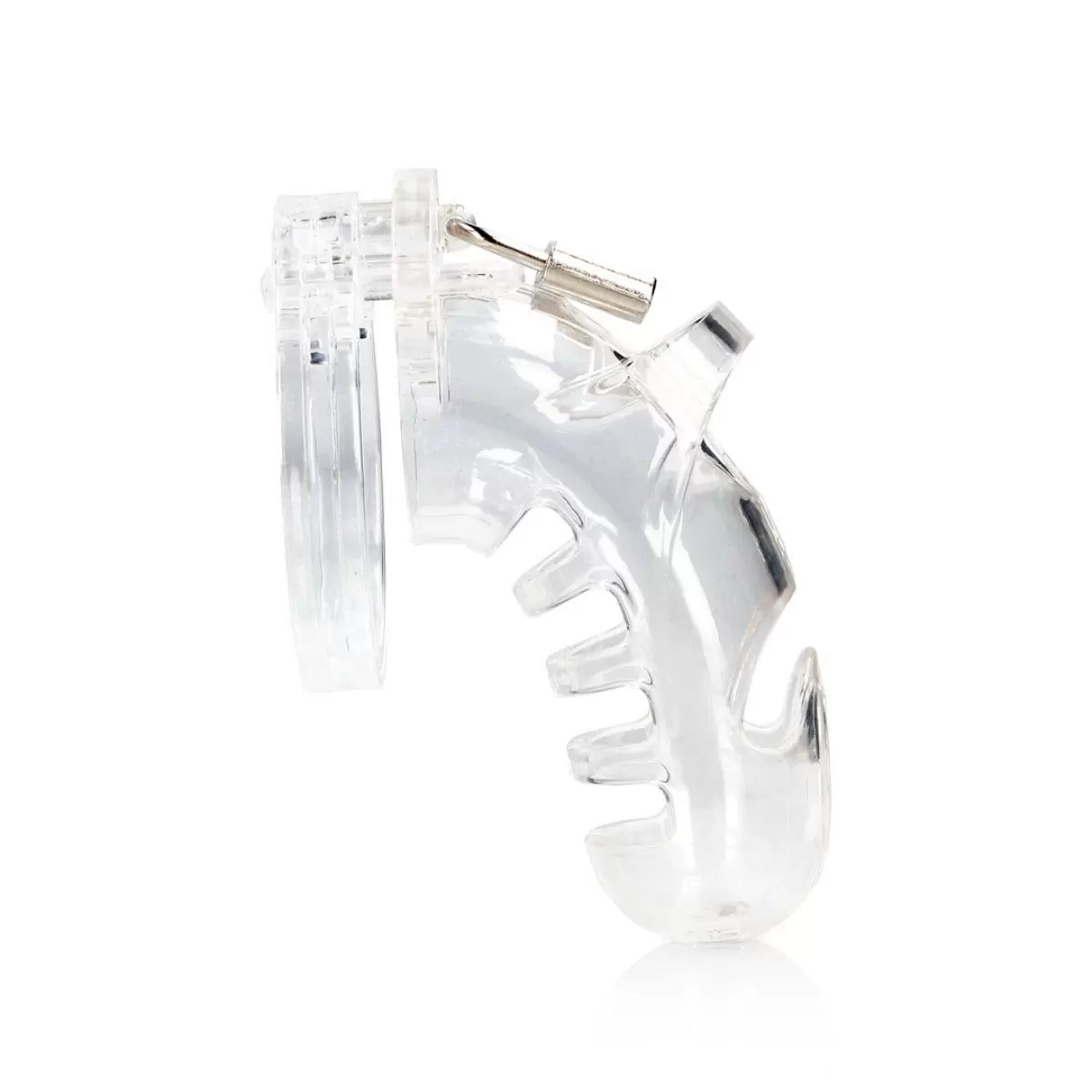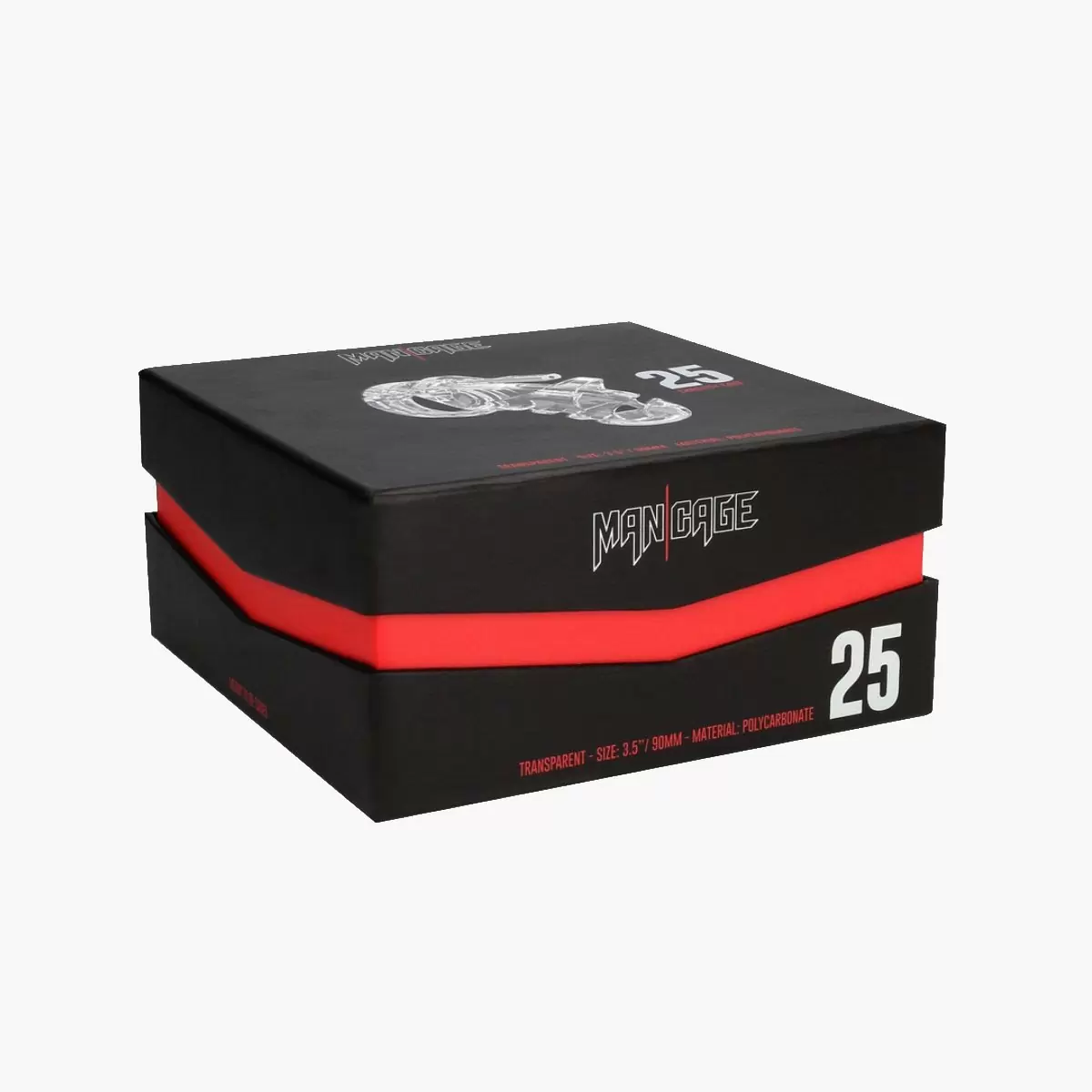 The Man|Cage Chastity Cages are manufactured from high-grade polycarbonate a very light durable and hypoallergenic material. The cage consists of three parts which fit perfectly together. The two guidance pins connect the top parts and the oval taper pin connects the rings with the cage. A variety of rings in different sizes and distance pieces will allow you to create the perfect size! The rings have a comfortable fit and are absolutely safe. A metal lock or tie-wrap lock can easily close the cage.