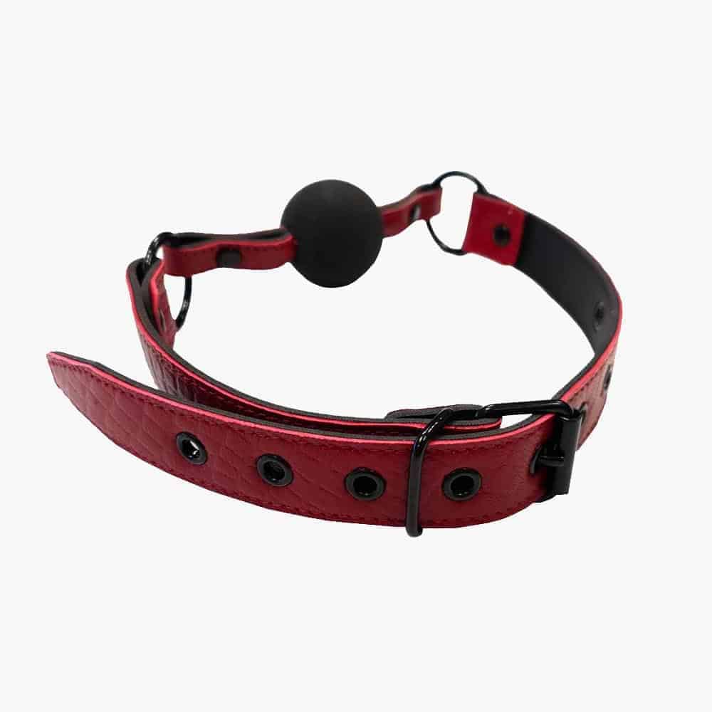 Introducing our Leather Ball Gag, a luxurious addition to your BDSM collection. Crafted with meticulous attention to detail, this gag features a striking burgundy snake print leather strap adorned with sleek black accessories, exuding sophistication and allure. The black ball completes the look, ensuring both style and functionality during play. Whether you’re exploring power dynamics or simply adding a touch of elegance to your intimate moments, our Leather Ball Gag promises to enhance your experience and leave you craving more. Surrender to luxury with our exquisite Leather Ball Gag.