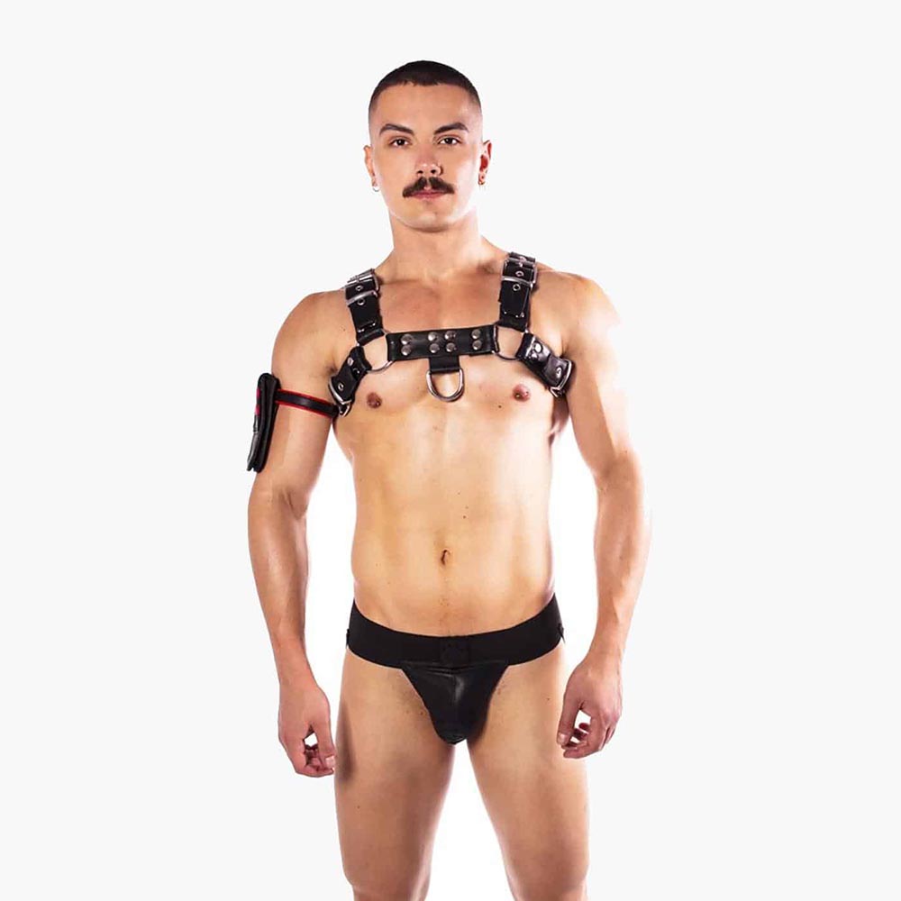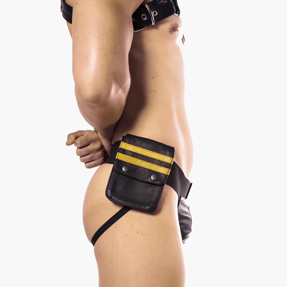 A must have for a night in gear. Whether you’re out in a jock and socks or a full rubber suit this wallet can hold all your essentials. It has two straps on the back that can be fastened tight or loose.