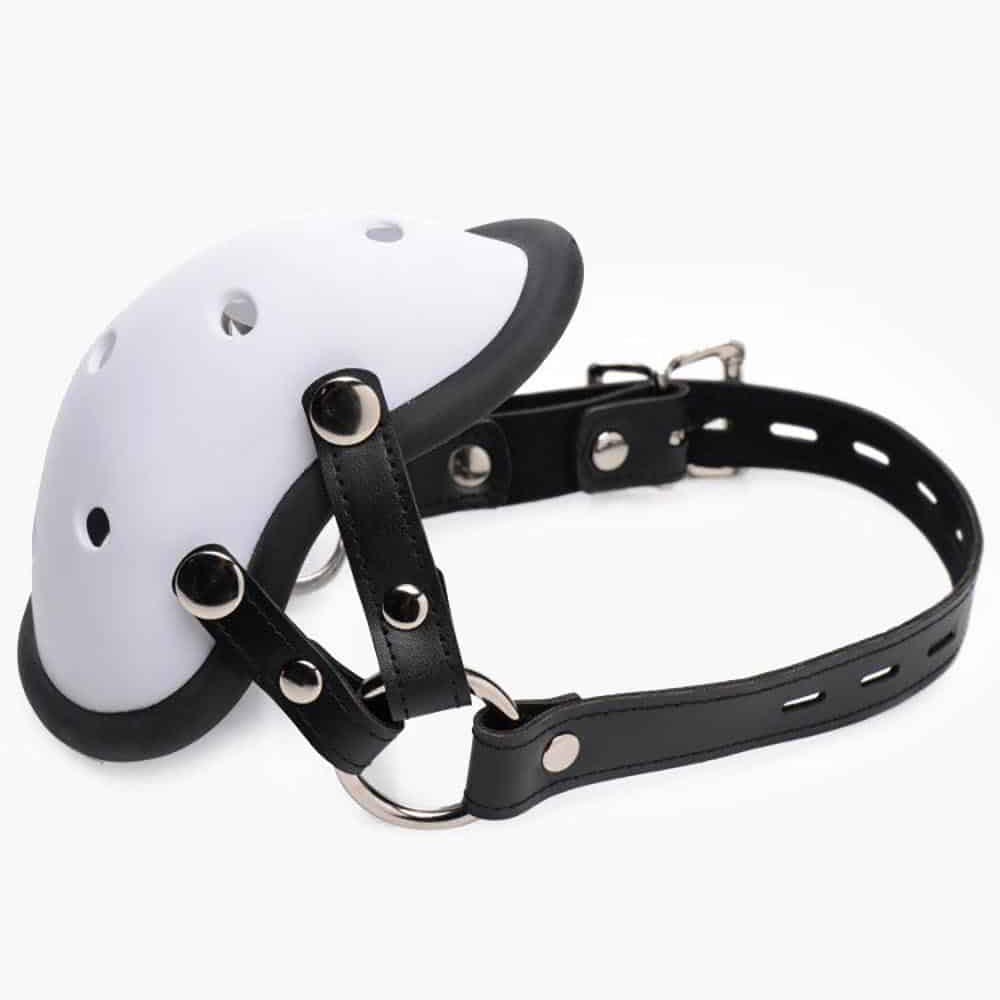 If your plaything can not get enough of the powerful smell of your sweaty groin give them what they want by locking them into this unique and humiliating muzzle! The comfortable silicone-lined athletic cup unsnaps from the straps so that you can wear it during the game then force your sub to inhale your scent afterwards. Overwhelm them with the pungence of a used pair of socks or underwear stuffed in the cup with their desperate face.
