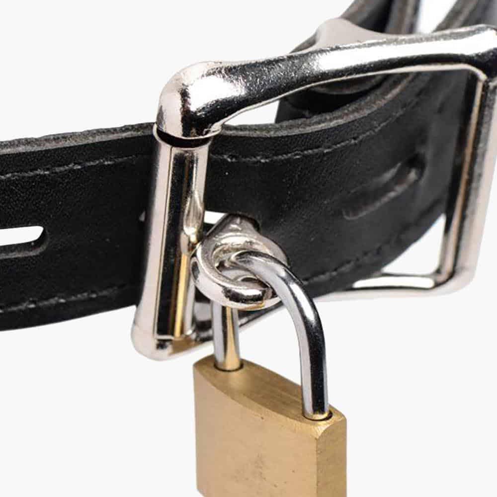 The straps adjust to fit most and have a locking buckle so that you can lock them up with your ripe odours trapped inside! Your nasty plaything better be careful what they wish for!