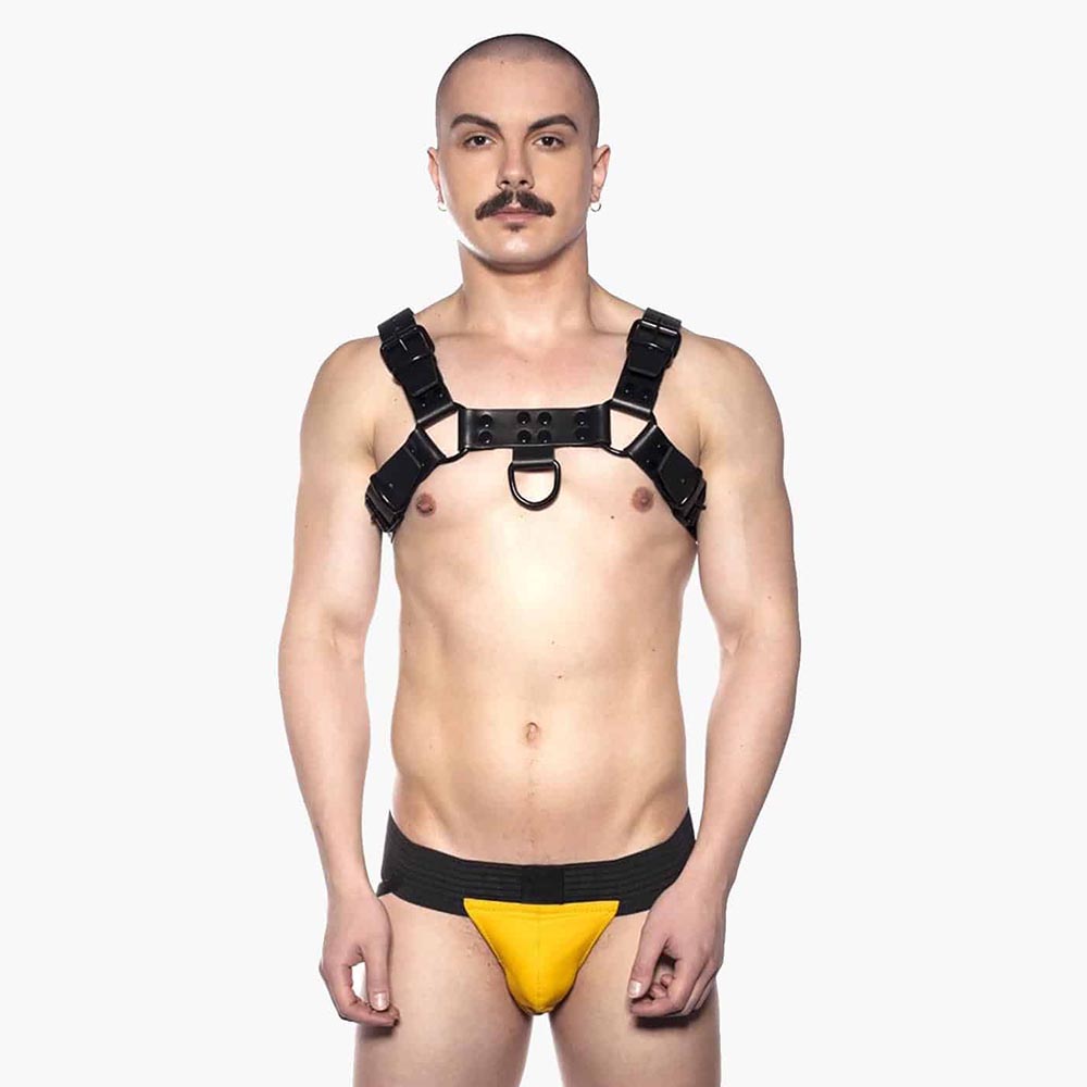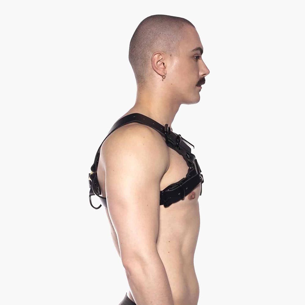 The Noir harness is a tough but streamlined harness perfect for the dungeon or the club. The well made leather straps and metal buckles will ensure a snug fit without being too bulky. Ideal for Sub/Dom role play with it’s D-rings at the front breastplate and at the back.The studded rivets finish the clean classic leather look.