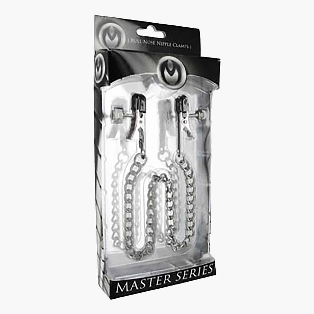 Built for precision and control, these bull nose style nipple clamps allow you to fine-tune pressure exactly to your liking. The screw-tight mechanism delivers a deliberate, steady intensity, while the chain connection adds tension and responsiveness.