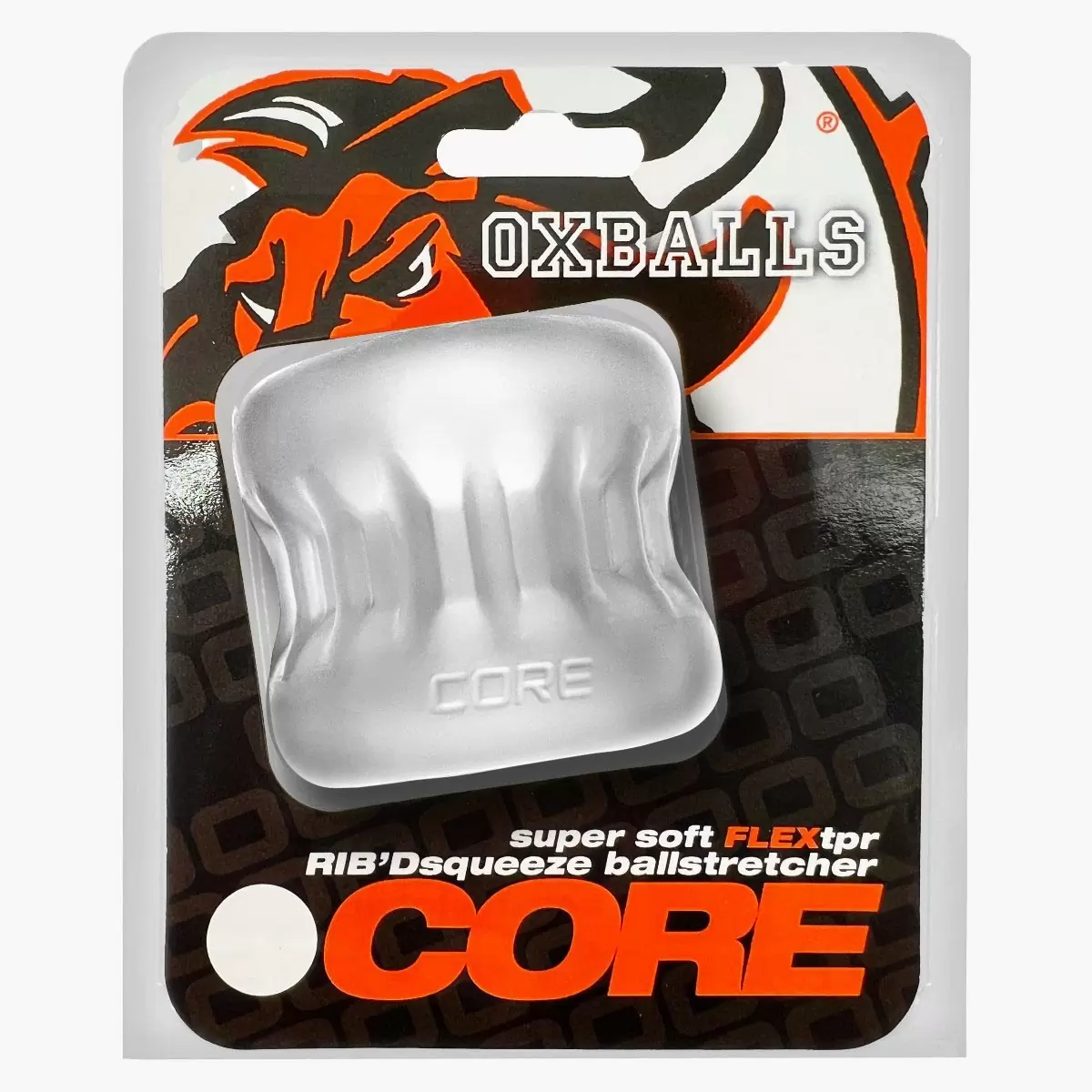 The CORE Ball Stretcher by Oxballs builds on the SQUEEZE design with added structure and extended stretch. Featuring a ribbed outer body and smooth inner sleeve, it delivers a deeper hang with a more supported, consistent hold.