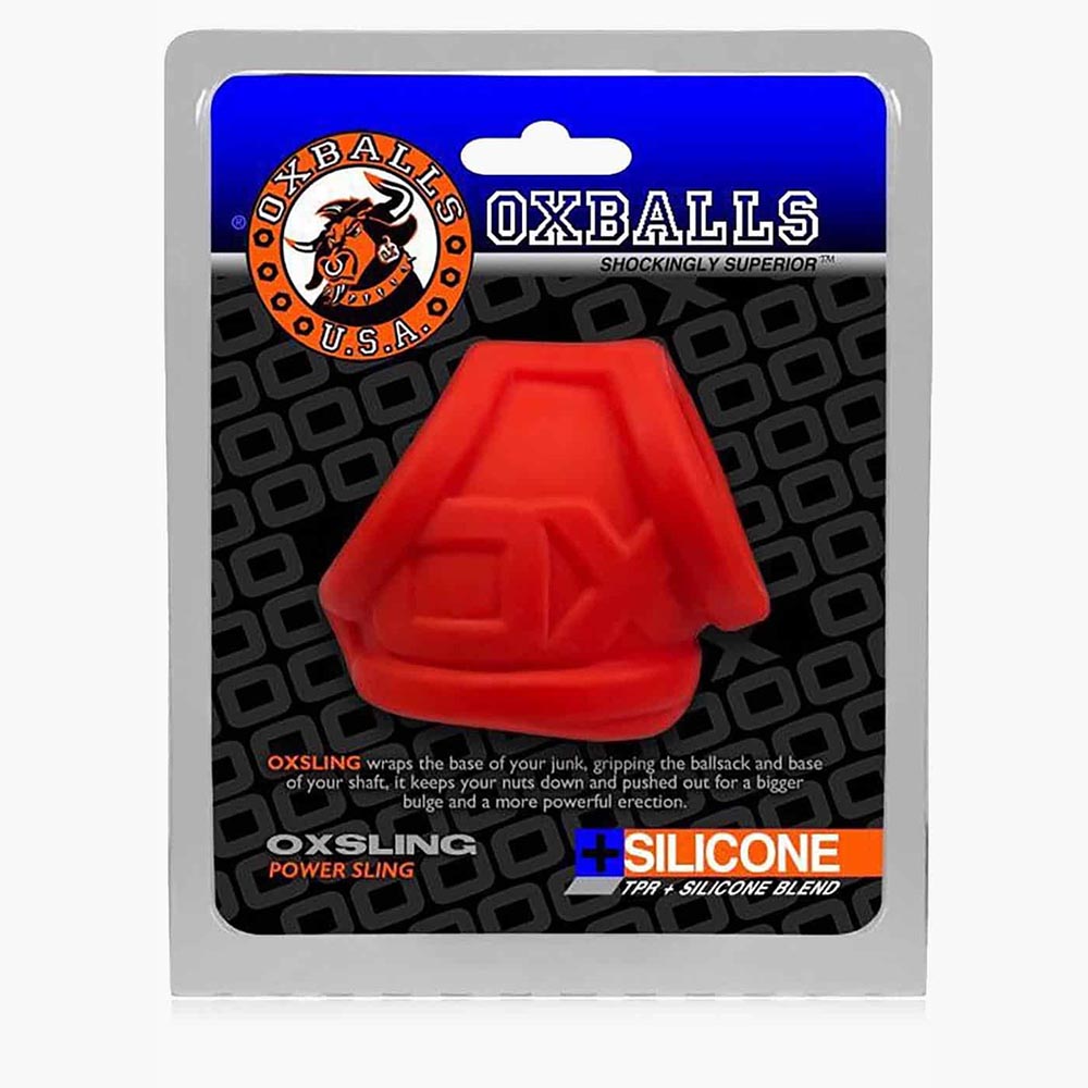 OXSLING is the new PLUS+SILICONE cocksling from OXBALLS. Our PLUS+SILICONE combines the strength and stretch of TPR with the warmth and softness of smooth silicone. Each opening on OXSLING is reinforced with a thick ring that grips your sack and shaft and pushes your balls down and away from your body for a more intense orgasm. The soft, squishy material and futuristic sling design give you a bigger, beefier package and a longer lasting hard on.
