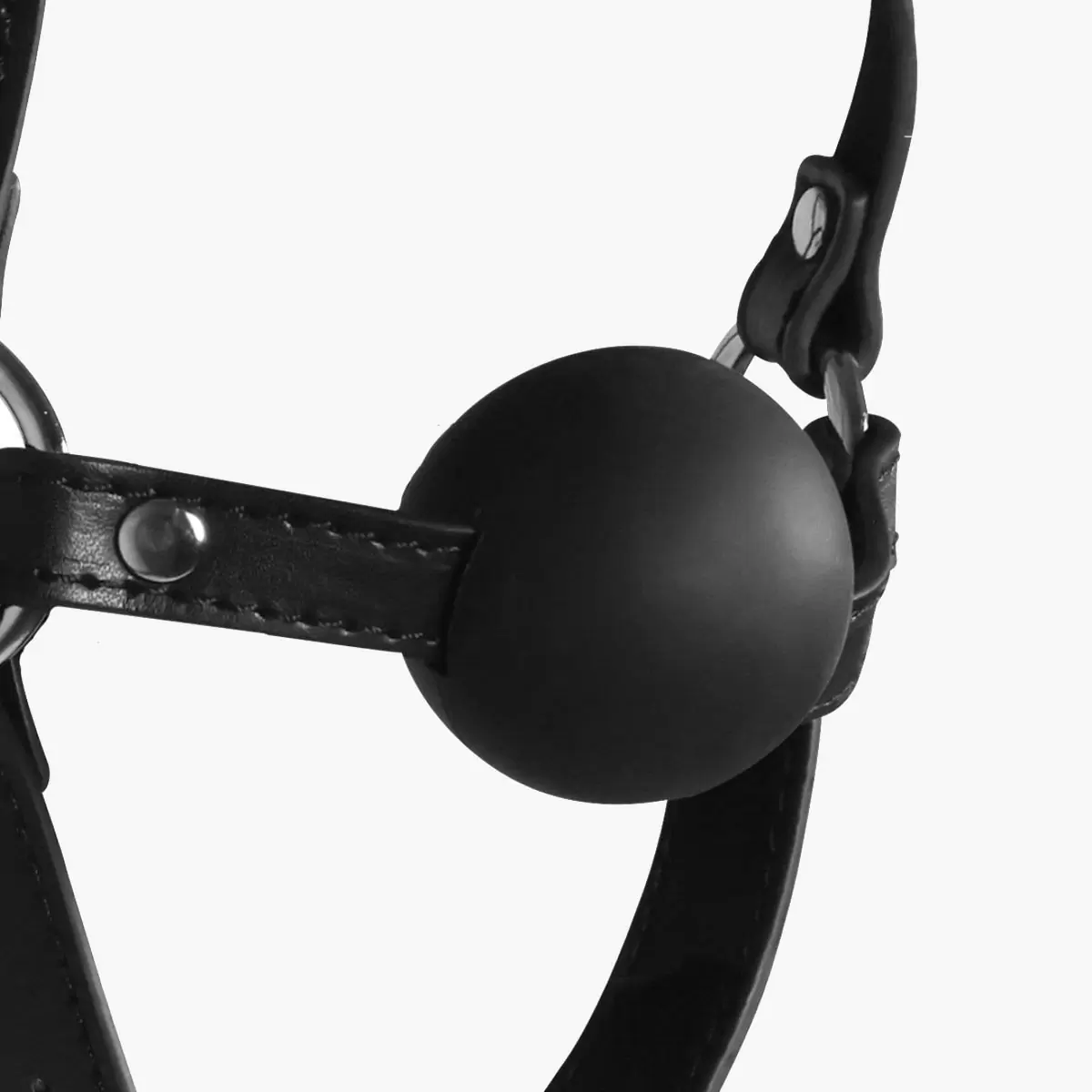 Intensify your BDSM with this kinky Head Harness with Solid Ball Gag. The attached 1.65 inch ball gag will guarantee complete surrender for the submissives and slaves leaving them with no means of escape. Crafted from PU leather the mask exudes a bold and rough aesthetic enhanced by its metal buckles and details. The adjustable straps ensure a secure and comfortable fit. The attached 1.65 inch ball gag will shut up your obedient partner.