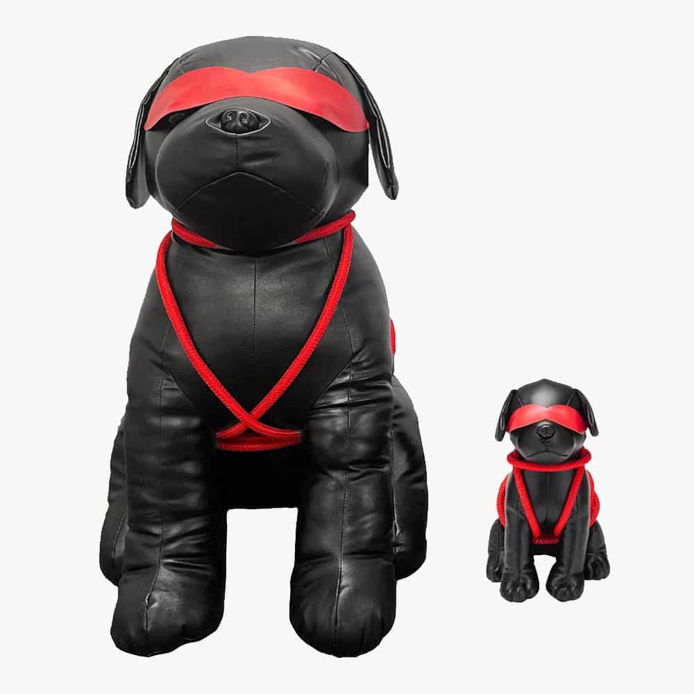 This naughty leather pup has always wanted to be tied up in rope and let others have his way with him. He’s so naughty in fact he even prefers it when you put an eye mask on him so he can’t see who is performing hot and horny things to him. Roped Up Rover is definitely a sub in the dog bed and is the best boy as he patiently sits by your feet fully restrained and ready for any other horny puppies to watch as he gets his rocks off!