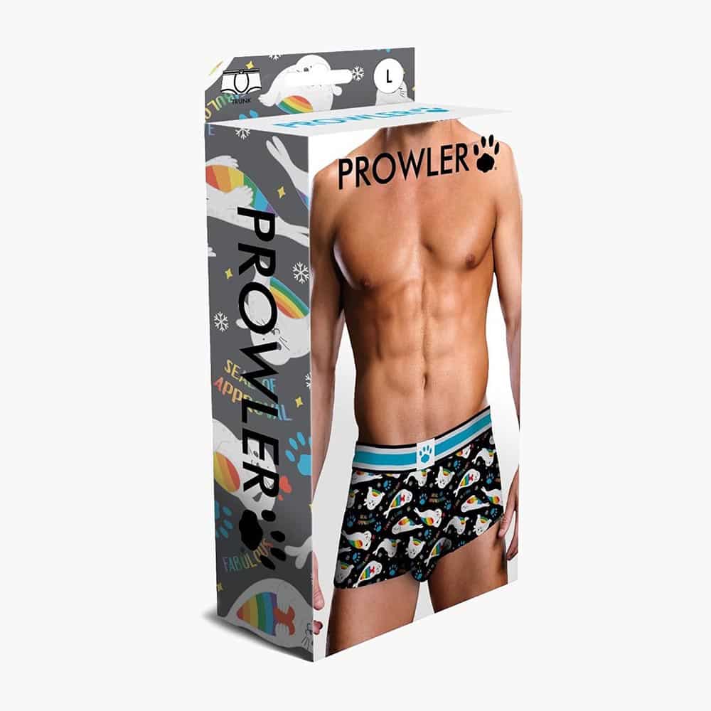 These Prowler trunks offer a combination of sexy style and playfulness. Embrace a touch of whimsy with this unique design of rainbow-bellied seals perfect for brightening up your daily activities. The colourful seals will bring a cheerful and charming vibe to your underwear collection adding a smile to your face every time you put them on. This eye-catching pattern sets these trunks apart making them a standout addition to your underwear drawer. Whether you’re seeking a fun and unique addition to your intimate apparel or looking for a fun gift these trunks are the ultimate choice. Embrace the joy and playfulness of these adorable seals while showing off your shape.