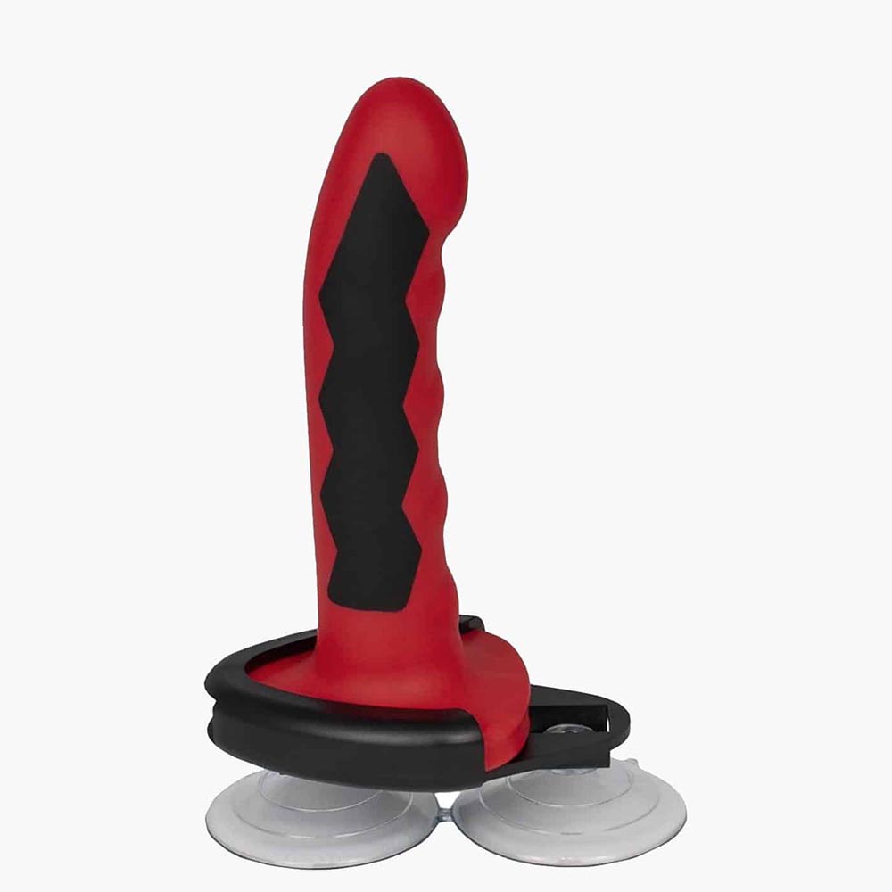 Compatible with any strap on harness, sold separately, with a 1.5-inch diameter o-ring Komodo also comes with a bespoke suction cup system that lets you use the dildo hands-free when attached to a smooth surface.