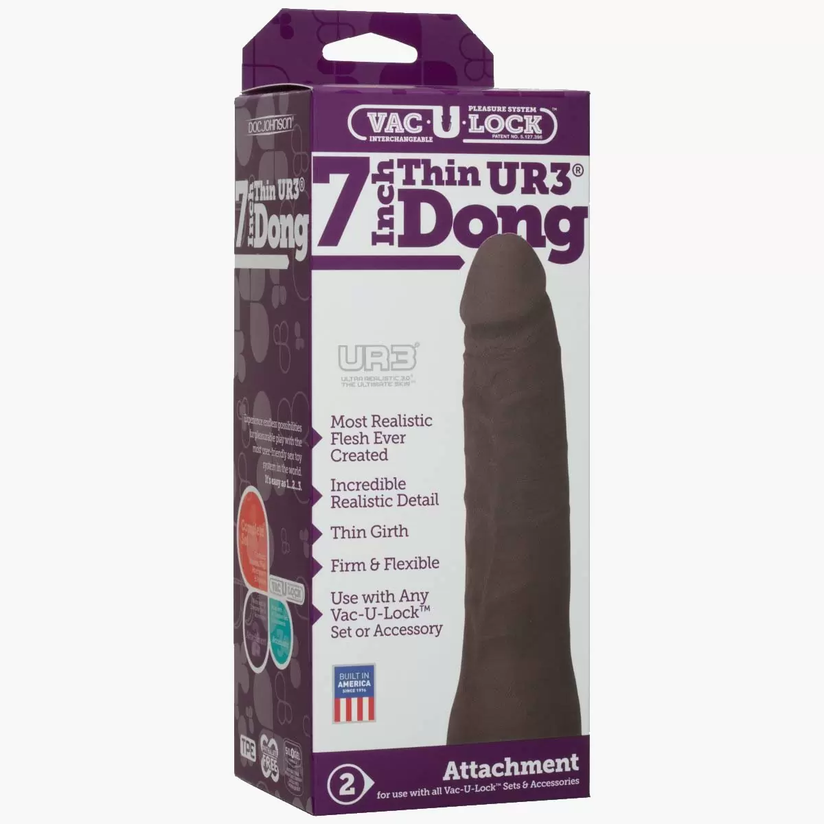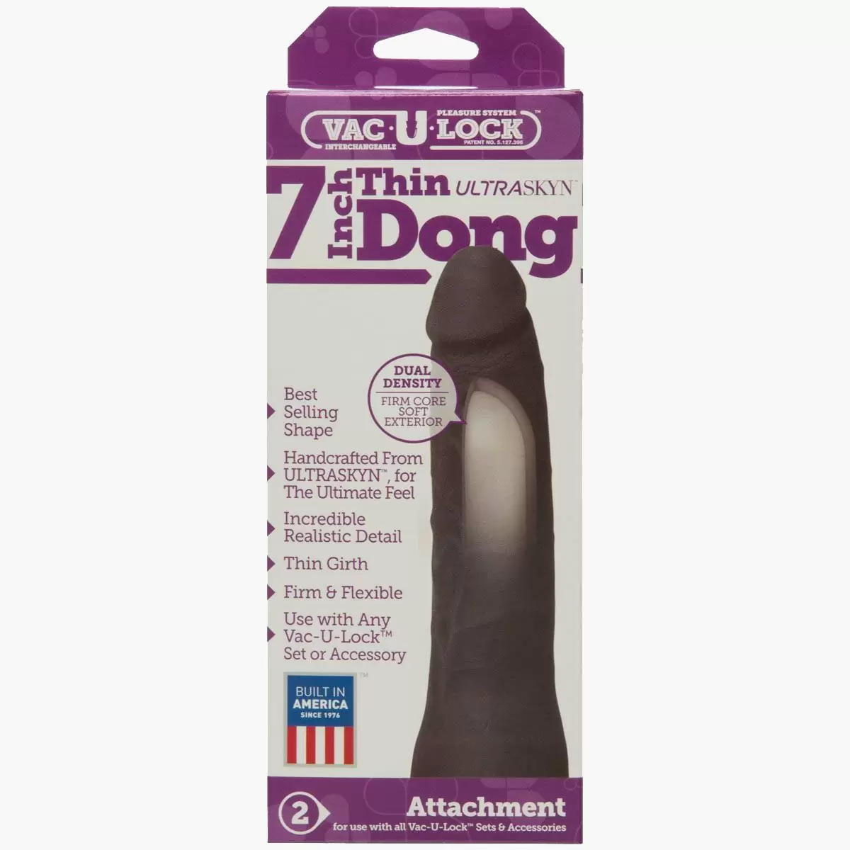 With its classic bestselling shape phallic head and perfectly textured shaft this 7” attachment will have you falling in love! Made with our lifelike ULTRASKYN™ material the Vac-U-Lock 7 Inch Thin Dong Attachment works with all Vac-U-Lock™ systems and is Proudly Made in America.